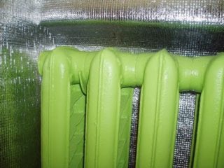 Les pertes de chaleur augmentent considérablement les coûts de chauffage. La partie du mur derrière le radiateur est l'endroit avec la perte de chaleur maximale, il est donc recommandé d'y installer un réflecteur de chaleur. Des surfaces réfléchissantes sont utilisées pour diriger les flux de chaleur vers l'intérieur. Ils conviennent aux structures complexes avec des coins et des coudes. Les boucliers thermiques derrière le dissipateur thermique sont constitués d'une variété de matériaux, souvent avec une surface en feuille. Avec leur aide, il est possible d'augmenter l'efficacité du système de chauffage de 20% en moyenne, ce qui entraîne une augmentation de la température de la pièce chauffée de 2-3 ° C.
