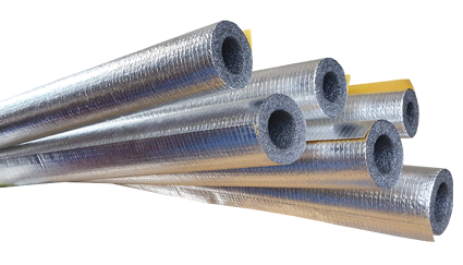 Les surfaces réfléchissantes ont trouvé leur place dans l'isolation et la ventilation des tuyaux. Dans ce cas, une isolation avec une feuille des deux côtés est utilisée. Pour les tuyaux d'un diamètre inférieur à 159 mm, un entrefer n'est pas nécessaire, dans les autres cas, il est nécessaire.Une attache est créée à partir d'anneaux de film d'aluminium à une distance de 300 à 400 mm les uns des autres, enveloppés d'isolant sur le dessus. Vous pouvez également poser des blocs de bois de 10 × 10 mm ou 20 × 20 mm le long des tuyaux et de l'isolant par-dessus. Tous les joints sont scellés avec du ruban d'aluminium.