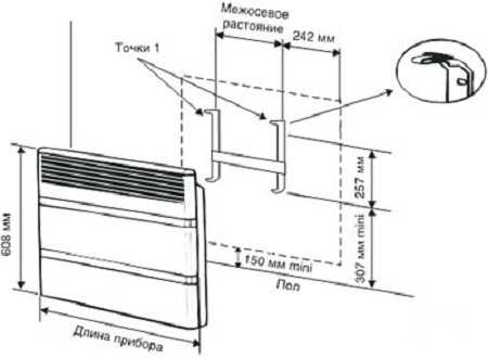 Les modèles muraux sont fixés aux surfaces verticales des murs vierges ou sous les appuis de fenêtre. Parfois, ces convecteurs sont livrés avec des pieds amovibles pour une installation au sol.