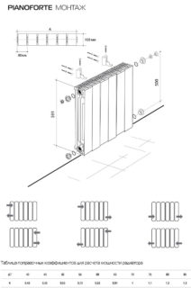 Pour une installation complète, chaque kit radiateur comprend toutes les pièces nécessaires qui vous permettent de connecter la batterie au système immédiatement après l'achat. La liste des pièces comprend les supports de montage mural, les chevilles, les bouches d'aération et les vis à goujon. Les instructions d'installation spécifiques du fabricant décrivent la séquence complète des étapes. Selon ces règles, il est nécessaire de respecter les distances indiquées pour la dissipation totale de la chaleur du radiateur. Avant l'installation, démontez l'ancienne batterie, le cas échéant, et déconnectez la colonne montante.