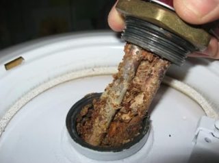 Faire bouillir à des températures supérieures à 40 degrés peut également résoudre le problème. La chaudière est nettoyée dans ce mode si la mauvaise odeur n'a pas disparu. Dans ce cas, le chauffe-eau est nettoyé du mucus, des particules de saleté, du tartre et d'autres substances nocives pouvant provoquer une panne. Une telle unité est démontée en versant d'abord de l'eau et en déconnectant les pièces, y compris les tuyaux, les fils, les éléments chauffants, ainsi que la bride inférieure. Il doit être traité avec une solution d'acide citrique, rincé à l'éponge et rincé à l'eau tiède.