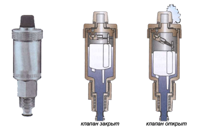 Pour un système avec mouvement forcé de l'eau dans les tuyaux, la formation de poches d'air peut être évitée en utilisant un évent installé en haut du système. En partie, il remplit les fonctions d'un vase d'expansion ouvert, mais en même temps, il ne réduit pas la pression dans les tuyaux à un niveau critique. Son absence est une cause indirecte du mauvais chauffage du radiateur de chauffage.