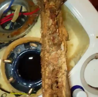- Obstruction. Se produit lorsque le réservoir n'est pas nettoyé correctement ou en raison d'une mauvaise qualité de l'eau. L'essence de la panne est qu'après la compression, le ressort ne peut pas être relâché, car un obstacle de particules solides se forme sur son chemin. Avec un tel dysfonctionnement, le produit fuira même lorsque l'appareil est éteint et que le robinet est fermé.