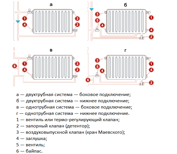Les batteries tubulaires sont connectées de deux manières - en bas ou sur le côté. Le choix est influencé par la conception du modèle particulier acheté, les caractéristiques individuelles de la tuyauterie et l'état du système d'alimentation en chaleur.
