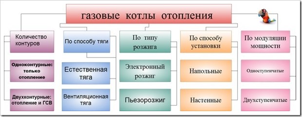 Pour les réseaux de chauffage central et autonome, le gaz naturel est utilisé avec une combustion au méthane et au propane-butane. Quel que soit le mélange brûlant, le principe de fonctionnement de la chaudière est présenté: