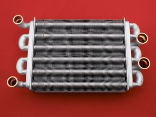 Il est inclus dans le dispositif de chaudière à deux circuits, en cuivre ou en acier de construction. Les échangeurs thermiques secondaires diffèrent par le type de circuits :