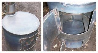 Le moyen le plus simple de fabriquer vous-même un poêle ventral consiste à utiliser deux fûts en métal selon le schéma standard. Pour cela, vous aurez besoin de deux barils, dont l'un devrait être plus petit. La partie supérieure est coupée de chacun, des poignées métalliques et des pièces de type verrouillage sont fixées à la partie restante. Avant de commencer les travaux, il vaut mieux rincer abondamment les fûts pour se débarrasser de l'odeur désagréable qui pourrait y rester. L'assemblage d'un tel four selon les règles consiste en plusieurs étapes, réalisées étape par étape:
