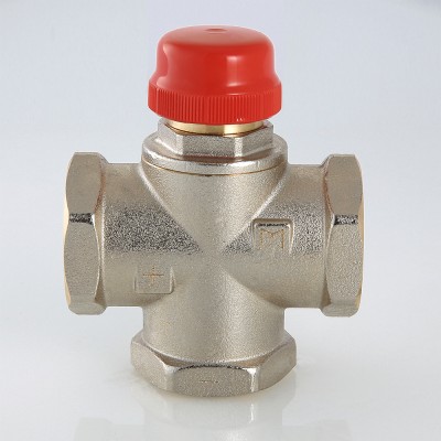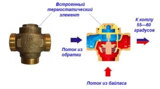 Une vanne à trois voies pour le chauffage est équipée d'un thermostat dans lequel se trouve un liquide ou un gaz. L'environnement interne réagit à tous les changements de température des cours d'eau. Le chauffage jusqu'aux paramètres réglés active le système de piston de la vanne thermique et le flux chaud est bloqué.