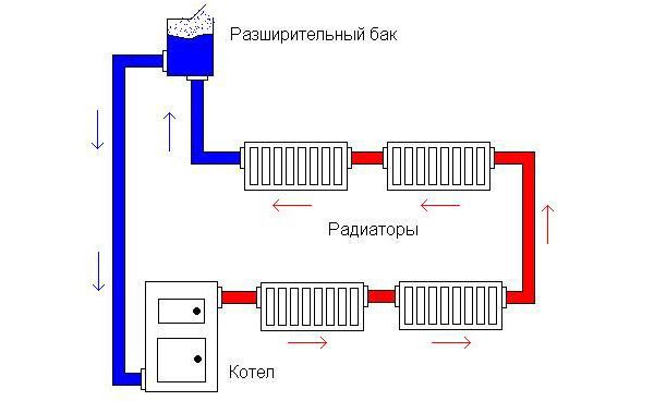Pour la stabilisation automatique de la pression du liquide de refroidissement dans les tuyaux, un vase d'expansion ouvert pour le chauffage ouvert est fourni dans le système. C'est la conception de ce composant qui distingue le schéma d'alimentation en chaleur ouvert du schéma fermé. Le mouvement du liquide de refroidissement peut s'effectuer de deux manières :