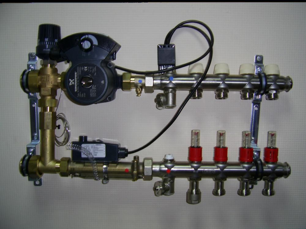 La pompe des chaudières à gaz (la plus populaire pour le chauffage des appartements) est conçue pour un certain volume de liquide de refroidissement dans le système.Il convient de garder à l'esprit que la longueur totale des contours du chauffage par le sol peut atteindre 150 m. Il est donc impératif de raccorder une pompe supplémentaire à l'ancien circuit de chauffage. Il est préférable d'utiliser une conception de collecteur éprouvée pour cela. Une pompe de circulation est incluse en standard.
