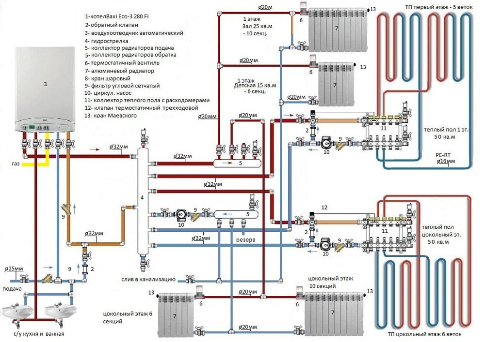 - Il n'est pas nécessaire de modifier le schéma standard pour l'installation d'une pompe supplémentaire dans le système de chauffage;