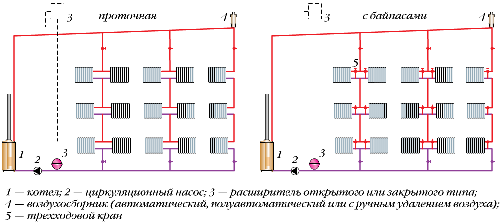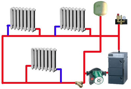 Les inconvénients du chauffage à circulation forcée comprennent des exigences accrues pour les tuyaux et les radiateurs. Ils doivent résister à la pression maximale admissible et à la température de fonctionnement spécifiée. Ce schéma est applicable pour les maisons d'une grande surface allant jusqu'à trois étages.