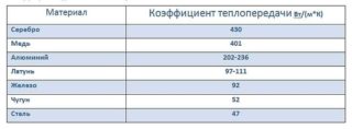 Dans ce cas, la même dépendance linéaire est observée : avec une augmentation de la surface de la batterie, l'amplitude du transfert de chaleur augmente également. Pour cette raison, de nombreux radiateurs de chauffage modernes sont complétés par des ailettes spéciales en aluminium, qui augmentent le transfert de chaleur global.
