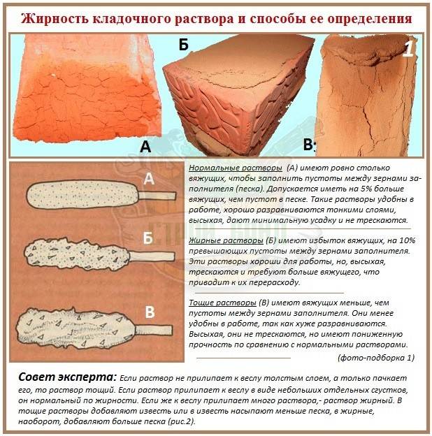 - La brique est posée sur une solution plastique non aqueuse. Le mélange est vérifié en déplaçant la truelle. Le sec se déchirera, le mouillé gonflera, le normal se déplacera uniformément.