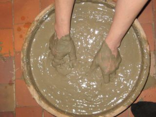 - Le sable est mélangé à de l'argile et passé à nouveau au tamis pour obtenir l'homogénéité et écraser les éventuels grumeaux.