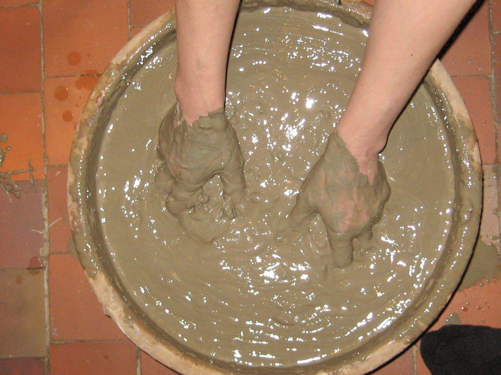 Pétrir la pâte d'argile avec une perceuse et un mixeur.