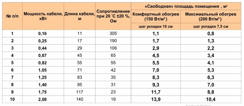 Cependant, le chauffage au sol ne fonctionne pas en permanence : le câble chauffe pendant 5 à 20 minutes en une heure. Par exemple, pour une superficie de 12 m². m. avec une puissance système de 150 W / m². m, la consommation maximale sera de 1,8 kW par heure. Mais comme le système ne fonctionne que 10 minutes par heure et refroidit pendant 50 minutes, la consommation réelle ne sera que de 0,3 kW par heure.