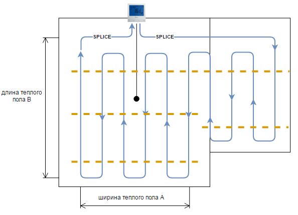 Un calcul approximatif est effectué comme suit : la surface utile est multipliée par la puissance du chauffage au sol électrique par mètre carré, indiquée dans le passeport produit. Le débit le plus élevé possible est obtenu.