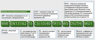 Les fabricants indiquent sur l'emballage le nom, les dimensions, la date de sortie de l'isolant, la résistance au feu, l'épaisseur et le type de bardage. Par désignations de lettres numériques, vous pouvez comprendre les significations :