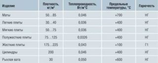 Les modifications rigides d'une densité de 150 kg / m3 conviennent à la pose sur des sols en métal ou en béton armé. Pour la lutte contre l'incendie, un matériau d'une densité de 200 kg / m3 est optimal.