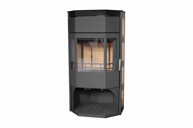 Modèle dans un boîtier en acier avec un boîtier de convection en métal. La surface intérieure de la chambre de combustion est décorée de tuiles en argile réfractaire. L'intensité de l'alimentation en air de la chambre de combustion est régulée. L'option cheminée est équipée d'un écran en verre résistant à la chaleur.