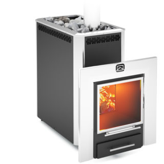 Poêle de sauna qui chauffe le hammam et la pièce adjacente de 12 à 24 mètres cubes. Pour la fabrication du foyer et du corps, de l'acier de 5 mm d'épaisseur a été utilisé. Le foyer est équipé d'un verre résistant à la chaleur. Un système de postcombustion des gaz secondaires a été mis en place.