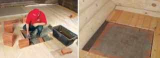 S'il n'est pas possible d'équiper la base de cette manière, mais qu'il y a un sol assez dur, il suffit de poser dessus une feuille de métal de 3-4 mm d'épaisseur, qui doit être fixée avec des vis autotaraudeuses. L'acier renforcera en outre le sol et servira de protection contre les retombées des charbons ardents.