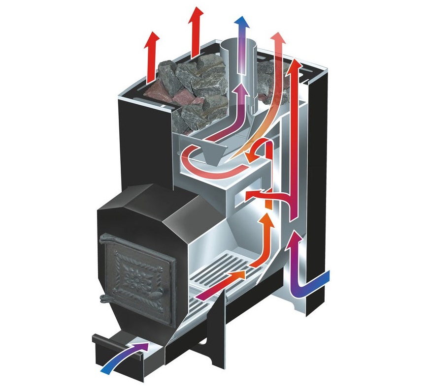 - un foyer pour brûler du bois de chauffage - à partir de là, la chaleur de la structure principale est transférée;