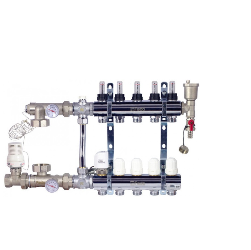 - peigne de retour pour le retour du caloporteur refroidi vers la chaudière ou la conduite principale.