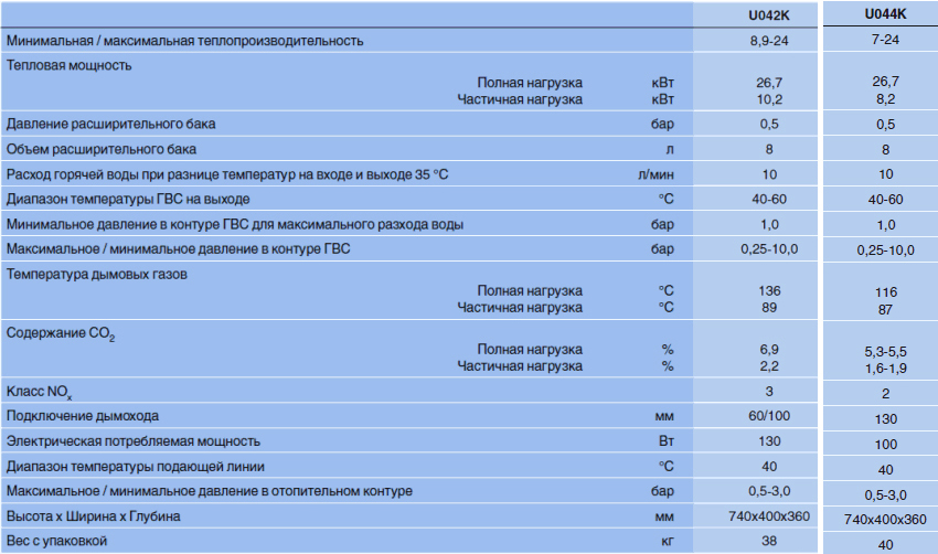 Le fabricant produit des chaudières de différentes capacités. Il varie dans la plage de 7000 à 100 000 W.