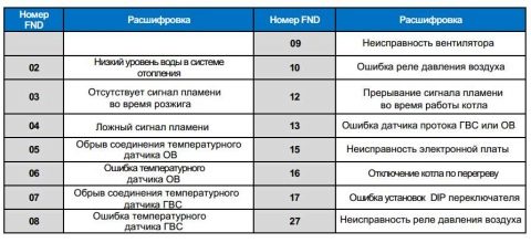Pour l'autodiagnostic des éventuels dysfonctionnements de l'équipement de la chaudière, l'utilisateur devra se familiariser avec les codes d'erreurs typiques. Malgré les nombreuses pannes potentielles de l'unité, elles se résument toutes à un nombre limité de codes. Lors de leur décryptage, même un utilisateur inexpérimenté pourra diagnostiquer de manière indépendante puis éliminer le dysfonctionnement.