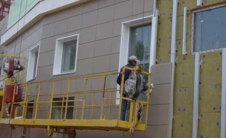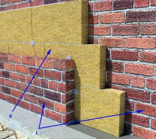 - Isolation thermique de la façade - lors de l'installation d'une façade ventilée, l'installation du cadre sera également requise. Les dalles de basalte sont posées dans des rainures et fixées avec des chevilles à disque. Un film coupe-vent est posé sur l'isolant et une caisse est fourrée sous le revêtement de façade. Lors de l'utilisation de la méthode humide, les dalles minérales sont fixées aux murs avec un adhésif spécial. Des produits rigides conçus pour une charge accrue sont utilisés. Un treillis de renfort est attaché au coton, qui est la base du plâtre décoratif.