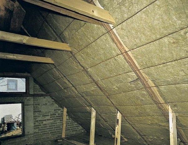 - Isolation du toit - lors de l'utilisation de laine de basalte pour un toit en pente, le revêtement doit être installé sur les chevrons. La meilleure option est de choisir des dalles d'épaisseur égale à la barre de chevron. Le gâteau isolant comprend un pare-vapeur et une membrane coupe-vent. Après avoir collé les matériaux en rouleau, un contre-treillis est emballé pour la pose de la toiture.