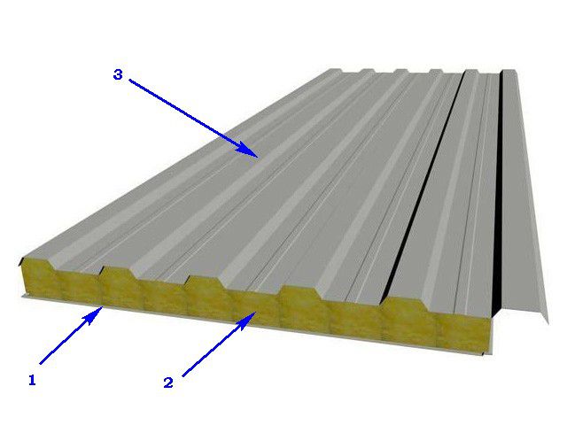 - Sandwich C - la couche extérieure des panneaux muraux est une tôle, des plaques d'une densité de 100-110 kg / cu sont utilisées comme isolant. m.