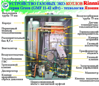 La chaudière à gaz Rinnai est fabriquée par une entreprise japonaise de production d'équipements de chauffage. L'unité a de bonnes caractéristiques techniques et opérationnelles, s'intègre de manière compacte à l'intérieur de la pièce. Technique remplace une personne en termes de régulation et de contrôle, le choix du mode de fonctionnement se fait automatiquement et dépend de la pression du mélange air-gaz.