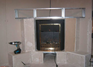 Une base est faite de cloison sèche, qui est ensuite décorée d'éléments décoratifs. C'est l'option la plus simple.