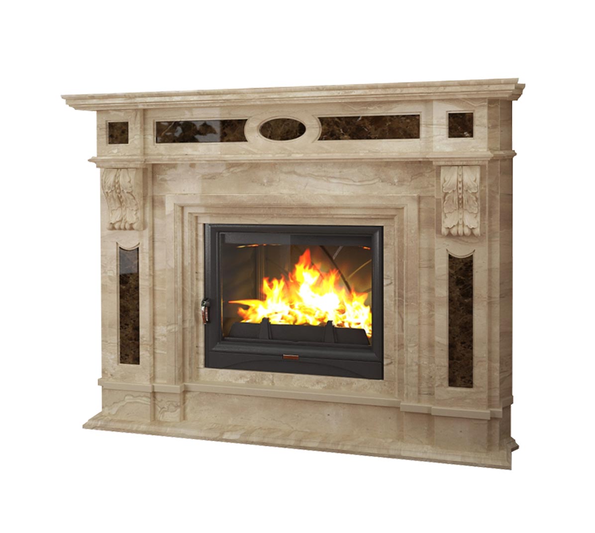 Le bois est un matériau polyvalent à partir duquel les portails de cheminée sont assemblés, adapté à la plupart des styles. Décorez les parties latérales et supérieures avec des sculptures ou obtenez un décor prêt à l'emploi. Avant la finition finale, le bois est traité avec des produits ignifuges et antiseptiques.La couche de finition est une peinture, un vernis décoratif ou un apprêt.