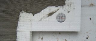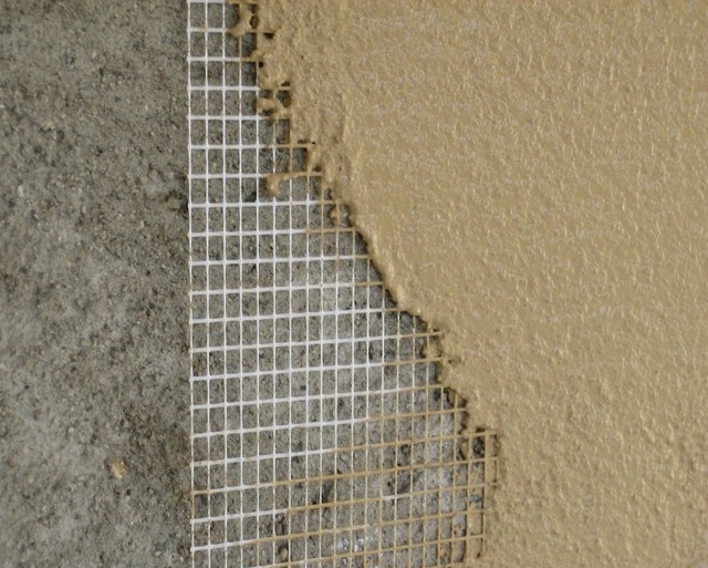 Le treillis en plastique est fixé avec du plâtre. Les bords des couches adjacentes se chevauchent d'au moins 10 cm et la couche est posée de manière à ce qu'aucun pli ne se forme. Des coins perforés en galvanisé ou en plastique sont placés aux coins du bâtiment et sur les pentes des fenêtres et des portes.