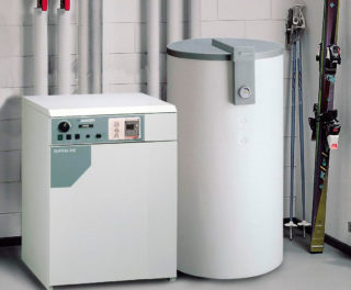 Groupe de condensation avec brûleur modulant. La puissance est de 34 kW. Équipé d'un contrôle multi-touch, d'un système d'analyse DIA-System et d'un système Aqua-Kondens. Se combine avec un stockage externe.