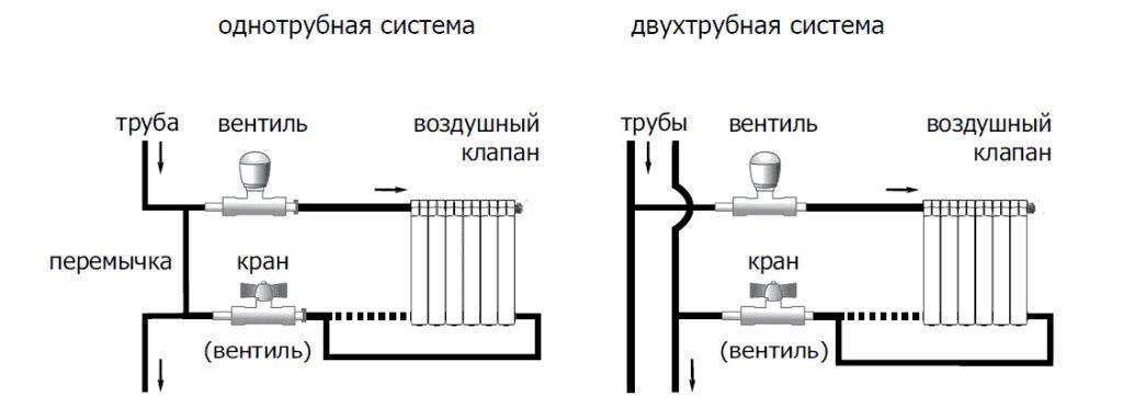 Vous devez également tenir compte de la disposition des tuyaux. Dans un monotube, un by-pass (cavalier) est obligatoirement installé, ce qui est nécessaire pour rediriger le flux de liquide de refroidissement en cas de réparation ou de remplacement du radiateur. Dans un système à deux tuyaux, chaque élément chauffant est connecté en parallèle. Par conséquent, il est plus facile de régler correctement les batteries de chauffage qu'il contient.