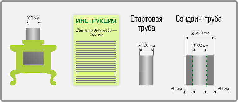 Un autre paramètre important qui détermine le choix du diamètre du tuyau sandwich pour le poêle est l'épaisseur de la couche d'isolation thermique, en moyenne 25-100 mm. Avec son augmentation, toutes les caractéristiques de la cheminée s'améliorent, mais en même temps le poids et le coût augmentent. S'il est nécessaire de remplacer ou d'aménager une petite surface, l'utilisateur devra sélectionner une section d'une structure appropriée produite par l'un ou l'autre fabricant. En règle générale, il n'est pas possible d'obtenir des joints fiables de cette manière. Dans certains cas, en raison d'un décalage dans les dimensions typiques, il est nécessaire de remplacer l'ensemble de la structure dans son ensemble.