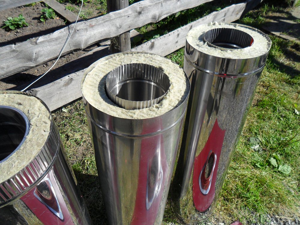 Afin de réduire le coût des produits, les fabricants ont lancé la production de conceptions spéciales combinant de l'acier inoxydable coûteux et des métaux ferreux. Dans le même temps, ils essaient de fabriquer un tuyau de l'extérieur en acier inoxydable de haute qualité et pour la fabrication de l'intérieur, ils utilisent une galvanisation relativement bon marché. Entre eux est placée une couche d'isolation thermique, qui est utilisée comme basalte ou laine de céramique. De telles structures peuvent supporter des températures de 600 à 1000°C.