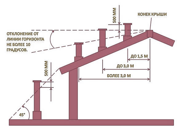 - s'il y a un autre bâtiment à proximité, la coupe supérieure de la cheminée est faite d'un mètre et demi plus haut que son toit.