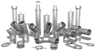 - Sections de tuyau droites jusqu'à 1 mètre de long et 80-600 mm de diamètre, utilisées pour l'assemblage de longues sections (passages) de la cheminée.