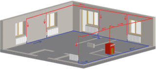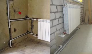 La ligne principale peut être montée dans le plan du mur ou le long de sa surface. Lorsque vous êtes à l'intérieur des murs, des sols ou des plafonds, il est important de réaliser une isolation de bonne qualité. Sinon, les pertes de chaleur augmenteront et la température dans les radiateurs sera plus basse. Cela est dû aux microfissures qui se forment lors du ciselage du mur.