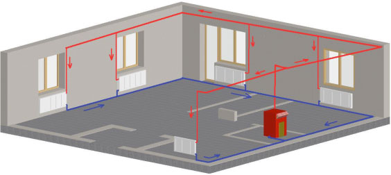 La disposition des tuyaux peut être supérieure et inférieure. Dans le premier cas, l'efficacité du transfert de chaleur est plus élevée, mais l'installation est plus difficile. Il est plus facile d'installer le système par le bas, et il est impératif d'installer la pompe.