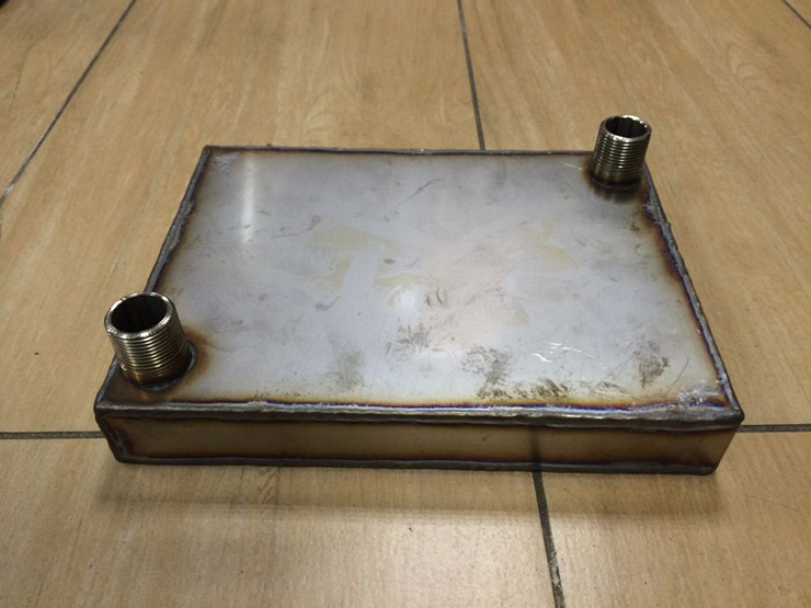 L'échangeur de chaleur fini est rempli d'eau et vérifié pour les fuites. Si tout est en ordre, la chaudière du poêle peut être mise en service.