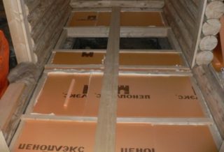 Si le sol est isolé dans le dressing d'une baignoire en bois, il est nécessaire de réaliser une couche d'imperméabilisation. Le type le plus populaire est le feutre de toiture. Au-dessus, une isolation est posée, puis à nouveau une couche de matériau de toiture. La finition est en bois. Au préalable, il est important de travailler le bois avec des composés spéciaux contre la formation de champignons et de moisissures. La laine de verre et la laine de roche, la mousse de polystyrène, le polystyrène expansé servent de réchauffeur pour un plancher en bois.