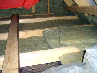 Une charpente en bois est fixée aux murs. Chaque pièce est placée à une certaine distance, qui dépend du matériau de l'isolant. Un isolant thermique et une couche de mousse de polystyrène revêtue d'une feuille sont placés entre les bandes obtenues. Une couche de finition est faite sur le dessus.