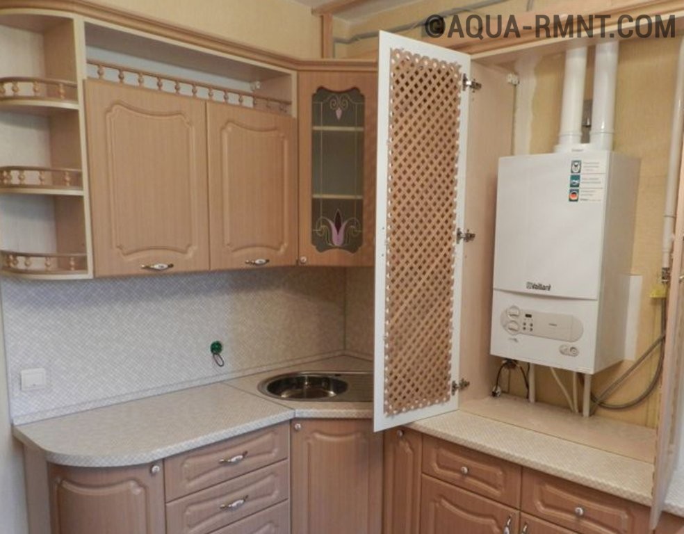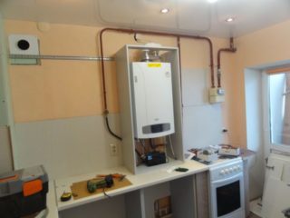 Certaines conceptions de maison prévoient une niche dans la cuisine. Vous pouvez y cacher du matériel si ses dimensions permettent de laisser les vides prévus par les conditions techniques. Si la niche est petite, vous pouvez trouver une chaudière de la taille appropriée dans le magasin. Vous devrez peut-être sacrifier la puissance et compenser son manque par un système « plancher chaud » ou des radiateurs électriques supplémentaires. Dans de tels cas, chacun prend une décision individuellement, décidant à quoi donner la priorité - le design ou l'aspect pratique.